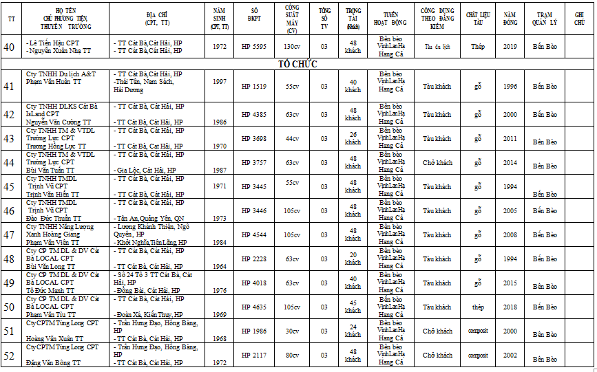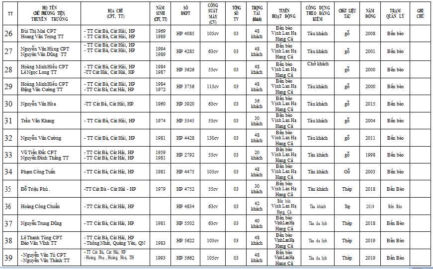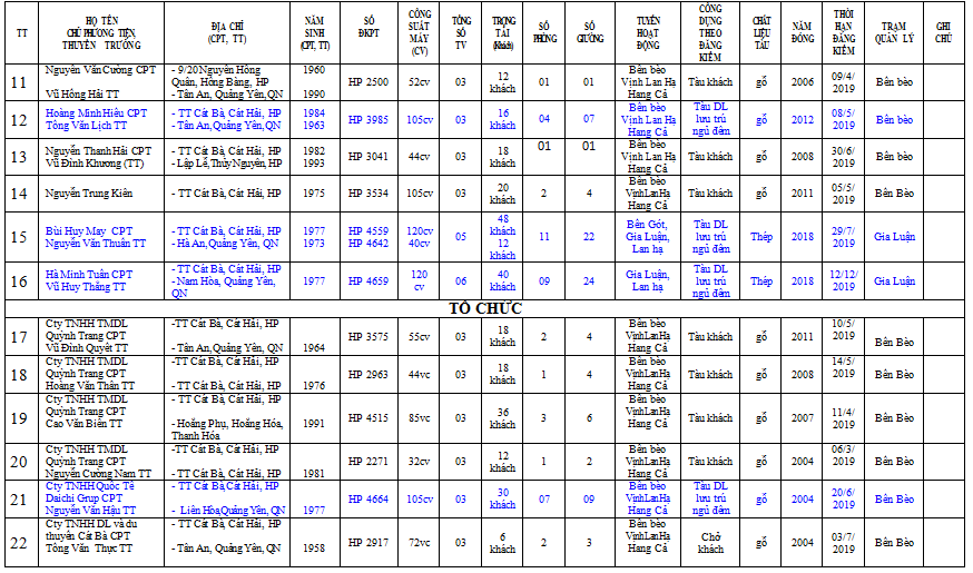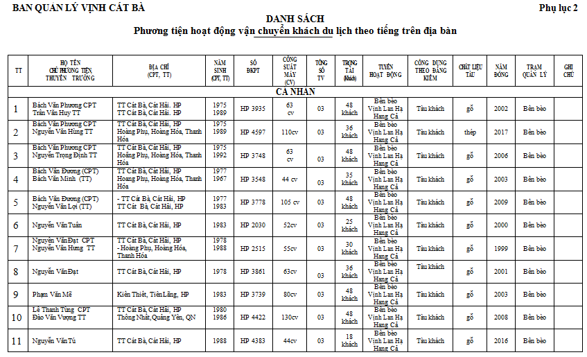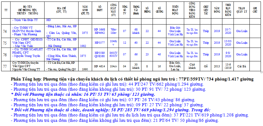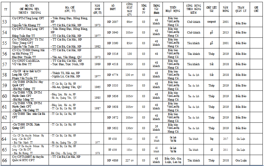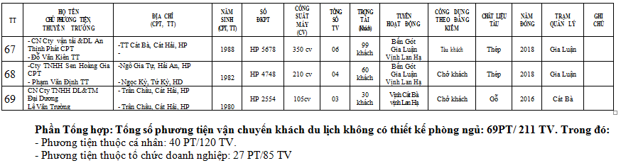 Danh sách phương tiện vận chuyển khách du lịch thăm quan vịnh