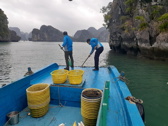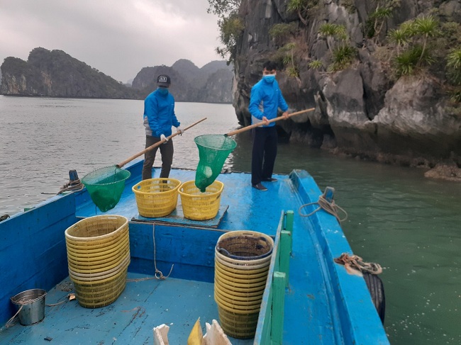 Hình ảnh tổ môi trường dọn dẹp, giữ gìn vệ sinh, cảnh quan môi trường Vịnh